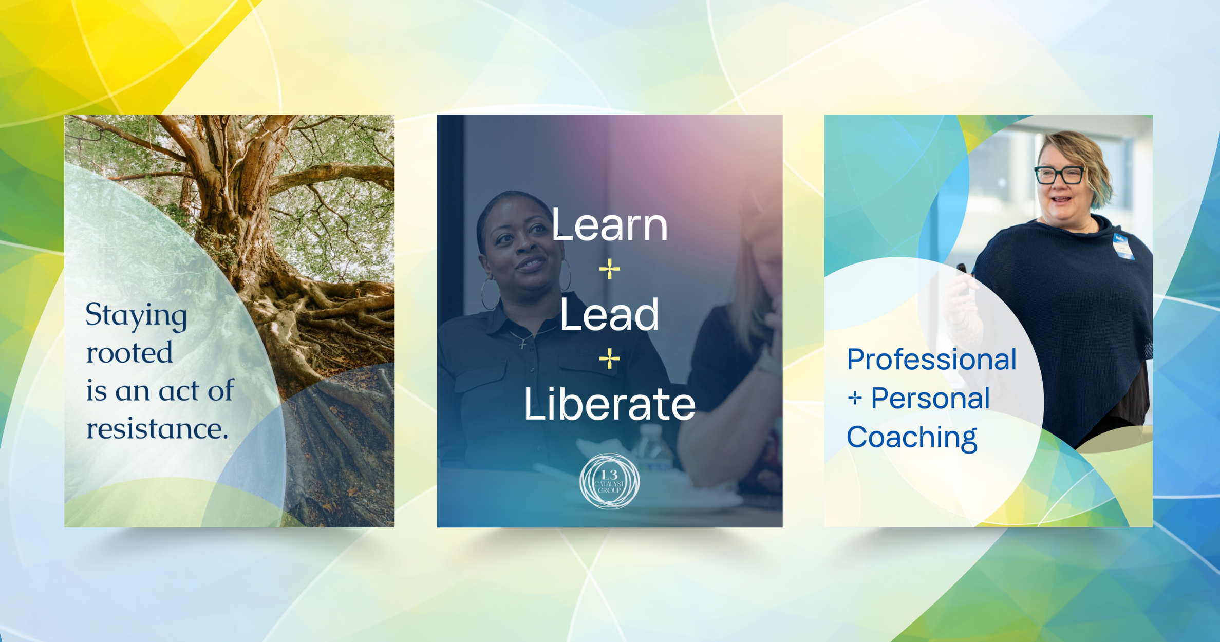 A custom set of graphics now establishes a vibrant, luminous foundation that sparks conversation and reinforces L3’s vision of collective liberation.